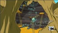 Una piccola caverna è incorporata nella struttura al lato posteriore. Sembra essere il posto dove i due avventurieri tengono gli oggetti per manutenzione; è qui che prende gli oggetti per creare Cingolino nell'episodio "Cingolino e le Torte". Questa zona viene usata anche in "Amore Impossibile" per la creazione di armature ignifughe.
