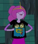 La Maglietta rockettara della Principessa Gommarosa è nera, con raffigurato due marshmallow bruciati su due bastoni che trafiggono un serpente giallo. Era la maglietta di Marceline, data in dono a Gommarosa. Nell'episodio "Una Band di Amici", Jake, pensando che fosse di Marceline, la diede a lei, ma Gommarosa lo interuppe e la prese lei, dicendo che la usa sempre come pigiama e dice che significa molto per lei.