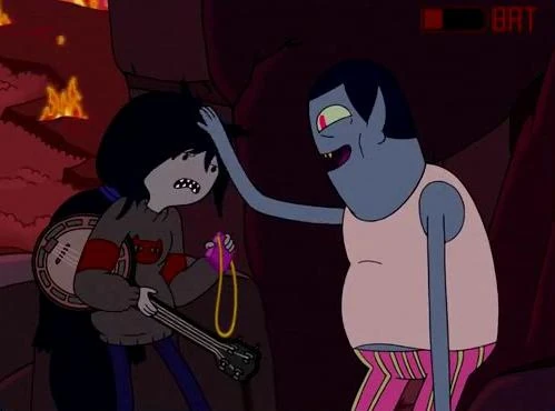 Anche se Marceline sembra inizialmente infastidita ed infuriata a causa della visita di Re Ghiaccio, decide di farlo restare, anche quando Finn e Jake irrompono nell' abitazione per portarlo via. La vampira ammette di voler bene a Re Ghiaccio, anche se non lo vede in modo romantico, ma come una sorta di figura paterna (lo allontana infuriata quando questo tenta di baciarla). E 'anche visibilmente sconvolta quando nota che lui non riesce a ricordare il significato dei messaggi che ha scritto per lei, prima della sua trasformazione, e rendendosi conto di non poterlo "salvare" come lui ha fatto con lei, Marceline scoppia a piangere.