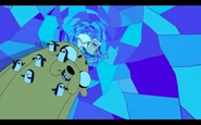 - Dopo che Jake dice a Finn "No no no! Finn sei fuso! Non rifilarmi il pazzoide!" La sua posa rimane congelata finchè Re Ghiaccio non riceve il pugno e viene messo KO.