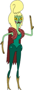 У Волшебницы №1 светлые волосы до плеч, наполовину зачесанные наверх. У нее бледно-зеленая кожа, жёлтые кошачьи глаза и розовые щёки. Она носит бордовый плащ, бирюзовую блузку без рукавов, зеленые штаны и светло-коричневые перчатки и сапоги.