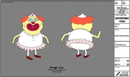 У медсестры-клоуна золотой зуб в нижнем ряду зубов. У неё бледно-жёлтая кожа, красный макияж у рта, красный клоунский нос и оранжевые волосы, выбивающиеся из под шапочки медсестры. Она носит бедую рубашку с воротником и розовую юбку. У неё длинные красные туфли как у традиционного клоуна. Как у многих клоунов-медсестёр, у неё на глазах макияж с четырьмя шипами.