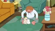 - На вечеринке, когда Мартин сидит с Финном между ног, он обращает внимание на их положение, говоря: «Посмотрите на это! Вы когда-нибудь видели, чтобы кто-то так сидел?» и Финн не замечает в этом ничего особенного. Однако в эпизоде «Острова» «Мин и Марти» есть одна сцена, где младший Мартин и малыш Финн сидят в своем доме точно в той же позе, что и в этом эпизоде (даже ракурс точно такой же).