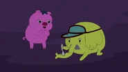 Позже он появляется во втором эпизоде той же вселенной, "Плохой мальчишка", на вечеринке Принца Пупырчатого Королевства, пытаясь произвести впечатление на Мисс Свин, играя в филе из пяти пальцев ложкой. Мисс Свин с волнением наблюдает за этим, но когда он ударяет ложкой по хоботу, они оба вздрагивают.