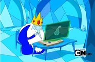 В "Киллере" он использовал его, чтобы нанять Лихача, в попытке "ударить" Финна и Джейка, будучи под домашним арестом. Финн и Джейк также ненадолго используют компьютер, чтобы проникнуть в личные файлы Ледяного Короля, когда крадутся через его логово в "Комнате ледяных кинжалов". В файлах были фотографии его поцелуев с принцессами, нарисованные Ледяным Королем с помощью программы, похожей на Paint.