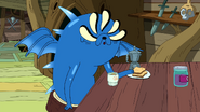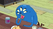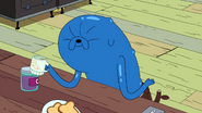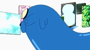 The following scene transitions to Jake at the Candy Tavern with Lady Rainicorn and Dirt Beer Guy. Jake admits he had gone through minor changes, but counters with the fact that many others going through changes as well. Following a conversation with Dirt Beer Guy, it is revealed that he had not recognized Jake, and he promptly walks off. Jake comes to the conclusion that people are used to his yellow color, so Lady Rainicorn uses her color altering ability to make Jake yellow again. After multiple failed attempts due to Jake's blue skin repeatedly returning, Jake tells Lady that he appreciates the effort.