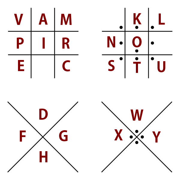 - In addition, issues 1 and 3 of the comic contain messages written by Marceline in a Pigpen cipher. The known letters of the cipher are in the chart to the right. Note that the first section spells out "vampire" and the rest of the letters are apparently in alphabetical order, making it fairly easy to guess the unknown letters.