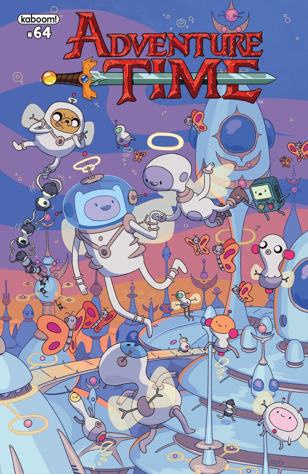 Adventure Time is a comic book series published by BOOM! Studios (US) and Titan Coimcs (UK), written by Dinosaur Comics creator Ryan North, and illustrated by Shelli Paroline and Braden Lamb.[1] The comic book was released monthly,[2] beginning with issue #1 in February 2012.[1] and ending with issue #75 in April 2018.