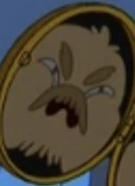 He looks just like his son but with a mustache and large eyebrows.