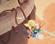 Astrid's hoverbike is a vehicle Astrid uses in "Cake the Cat" to locate Cake. Powered by advanced human technology from Up-Ton, it can fly through high distances and also has retractable wheels, allowing it to ride on the floor. It is a model specially made for kids, so Fionna had to be careful hanging on it in the aforementioned episode.