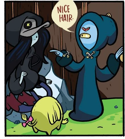 Bad Haircut Wizard is a wizard who lives on the outskirts of Bloodskull Village. As his name would suggest his power comes from his terrible haircut and he can curse others to have bad haircuts. When Bloodskull Village was cursed, drafted heroes Marceline and Tree Trunks confronted him, only to learn the only person he cursed was Charlie Mayor with an eternal bad haircut. He was also infatuated with Tree Trunks due to supposed beautiful hair.