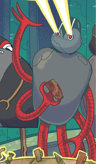 Bartholomew stood approximately two and 1/3 of Finn's height (based off of the comic book artwork) and had a rigid metallic build similar to his brothers. He had red circular eyes and four red telescopic arms.