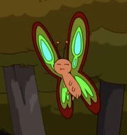 Spirit Butterfly | Tha Spirit Butterfly is a giant butterfly that Finn rode in the Mountain of Matthew in the episode "The Mountain". It very much resembles one of Finn's past Incarnations. |