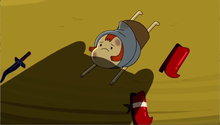 - Immediately after Finn and Jake clean Penny, Finn's new weapons disappear from his waist. They return in the next shot.