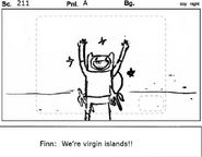 - Finn saying "We are Virgin Islands" was deleted in Middle East.