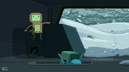 DMO also brings them to the core system driver installation bay. Finn jumps off to get BMO's core system driver. DMO tells them to get back to the tram. DMO then calls the SMOs. They come to shoot the intruders, and DMO's tram is knocked out of view.