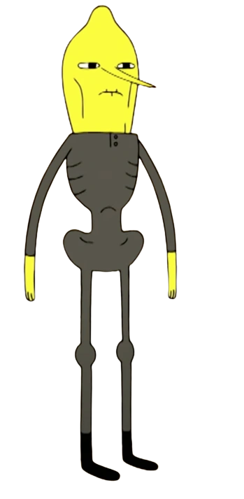 Earl of Lemongrab (or Fat Lemongrab in "Lemonhope Part 2") is a major antagonist in Adventure Time. He first appears in the episode "Too Young." He is the high-strung, overly-zealous, obnoxious, paranoid, stubborn ruler of the Earldom of Lemongrab, and the heir to the Candy Kingdom. It is possible that he is no longer heir to the throne because as of "Hot Diggity Doom," the Candy Kingdom is now a democracy. He is the creation of Princess Bubblegum and the first of her experiments to go wrong. He was able to usurp the throne of the Candy Kingdom on the technicality of Bubblegum's de-aging. Once Princess Bubblegum was 18 again, she fired him, and he returned to Lemongrab.