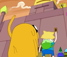 When Jake first meets the Earl in "You Made Me," he is initially frightened and confused by Lemongrab's behavior. Although he still views Lemongrab in disdain, he does not seem to see him as a threat. Jake is willing to intimidate Lemongrab to defend Crunchy when the Earl assaults him. He is also ready to fight Lemongrab as he quickly takes on a spiky, menacing form when told to rescue the Pup Gang, but assumes a gentle, floral form when told to only help the Earl. In the end, Jake harbors no hard feelings towards Lemongrab, despite being imprisoned by him, and waves happily as he and Finn leave Castle Lemongrab.