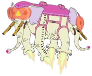 Elephants are a species of animal that appears in the Adventure Time series. One of the most prominent members of this species is Tree Trunks, who commonly appears through the series. Two elephants similar to Tree Trunks include her mother and her gender-swapped version. Another common elephant that appears throughout the series is the "Ancient Psychic Tandem War Elephant", who was wished into existence by Finn and Jake in the episode "The Limit".