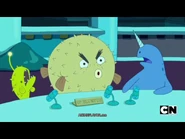 The parliament takes place in a sunken building underwater, the interior of which looks like a food court. The members sit around a table with microphones in the center of the food court during the meeting. A banner hung above the meeting depicts the words: 'Democracy of the Ocean' underneath a stylized picture of bigger fish eating smaller fish.
