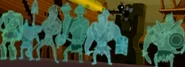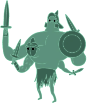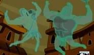 Gladiator Ghosts appear in the episode "Morituri Te Salutamus." The known names of the gladiators are Hyperion and Primo, Priscus and Verus, Amazonia and Achillea, Triumphus, Rutuba, Tetraides, and Romulus and Remus.[1][2] When they were alive they were forced by the Fight King to fight other ghost gladiators and then eventually each other. As Finn and Jake fought them they were screaming cries for forgiveness and the names of the friends they killed or were killed by. After Finn killed the Fight King by shattering his sword, the ghosts were freed and ascended into the sky in pairs, followed by the arena in which they were imprisoned.