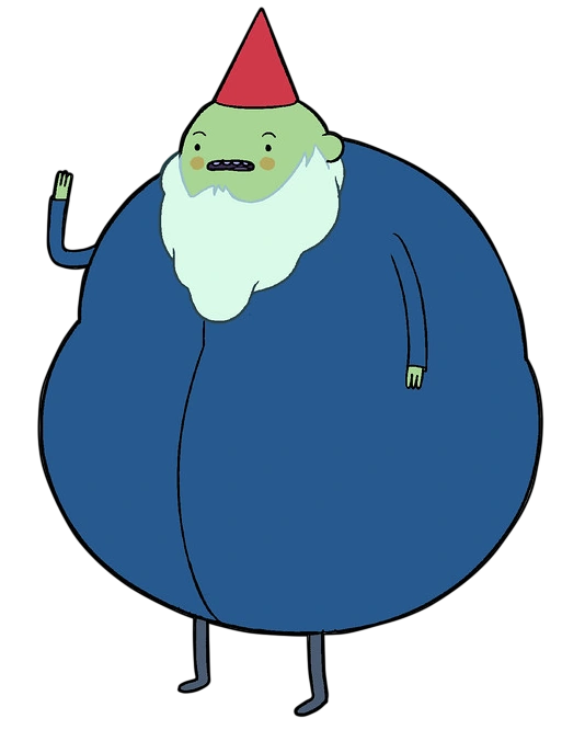 The Gnome Ruler is the main antagonist in the episode "Power Animal." He is the Grandmaster of the Gnomes and leader of the Beneathaverse. He first appears at Finn and Jake's party on the top of their Tree Fort in disguise as a spy. Standing on the shoulders of his Gnome Minions, he disguises himself as a tall, plump man wearing a large blue coat. He learns that Finn's powers are "endless" and later kidnaps Finn when he is sleeping. He then brings Finn to an underground lair filled with giant machines and his gnome minions.