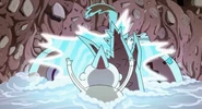 They are powering their last machine when suddenly Jake jumps down and begins smashing all the machines and frees Finn. The gnome leader attempts to blast Jake with a laser while he has the power bestowed upon him by the Party God. Jake punches the laser and destroys it, defeating the gnome ruler.