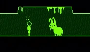 The Hunny Bunny in the real world is bigger than Bouncy Bee and Sleepy Sam. He is a rabbit coated with a strange, green, viscous slime-like substance which is likely to be a green honey as implied by his name.