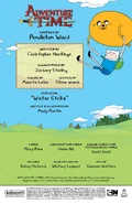Marceline is at home about to take a shower. After applying shampoo, she turns on the faucet, but no water comes out. She checks the other faucets around the house and even a well, but there is no water to be found. A pair of birds tell her there's no water in the sea or sky, and Lady Rainicorn is fading from no water in the air. Marceline calls this an emergency and sets off to find out what happened. Finn and Jake are at a dried-up river, wondering where the water went. They see Marceline and Lady coming and ask what they're doing. Marceline tells them that they came to see the source to find out about the water's disappearance. Many other people, including Princess Bubblegum, also come for the same reason. Finn calls an investigation, and everyone follows the river bed for a few hours. Jake gets thirsty and resorts to licking his sweat. Finn thinks it's gross, but also clever. Marceline then hears something, and Jake identifies it as crying. They all see that it's a sad little water drop. Everyone rushes to get her, but Marceline stops them. She says the water drop isn't enough for all of them, but might know where the rest is. She kindly asks the water drop what's wrong, and the water drop says that her mother and sisters left her behind since she couldn't keep up. Marceline says they can take her back to her mother, so the water drop shows them the way. After a while, they find the water drop's mother, Water Princess, on strike alongside the other water drops. Everyone asks what's going on, and Water Princess angrily states that she is mistreated by them all, despite everything she does for them. For example, Marceline leaves the tap running, Bubblegum pollutes the rivers with her factory, and Finn throws garbage into the ocean. Everyone feels guilty after hearing this. They apologize and agree to make things right, which makes Water Princess shed tears of joy. She ends her strike and starts playing water games with them. It also appears in "Sugary Shorts" Volume 4.