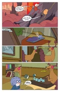 by Dale Beran and David Hellman. (Part One is featured in Issue 48. Both parts also appear in "Sugary Shorts" Volume 4). In the Nameless Mountains, Paul flies Finn and Jake to the spot where all Paulticores are born. He tells them that a magical flower grows in this place. When someone plucks it, they are transported to where they most ought to be at that moment. He says that his time is done and he will go to the underworld after picking the flower. He tells Finn and Jake to use it to find the Paulticore they need or possibly return home. Bidding farewell, Paul plucks a flower and disappears.Jake plucks another one and also disappears. Finn mourns Paul's sacrifice, then he plucks a flower himself. He ends up in the Parliament of Berries, where a Paulticore is giving remarks. The Paulticore says that they should offer what they have to those they care about, like how he gave all he could to help Finn and Jake, making it even sweeter. Princess Bubblegum thanks Finn for bringing a Paul-faced Paulticore, one with the wisdom of sacrifice etched in his face. Jake asks why Finn took so long to arrive, as he and Paul arrived about an hour earlier. Finn is surprised that the Paulticore is the same Paul from before, and Jake says he just had to find his Paul face. The judge unanimously declares that the berries will surrender their sweetest juices to Bubblegum so she can make the tea that restores youth to Paulticores and fuels her tea-sippng ceremonies and formal dances. He bangs the gavel and is ready to party.