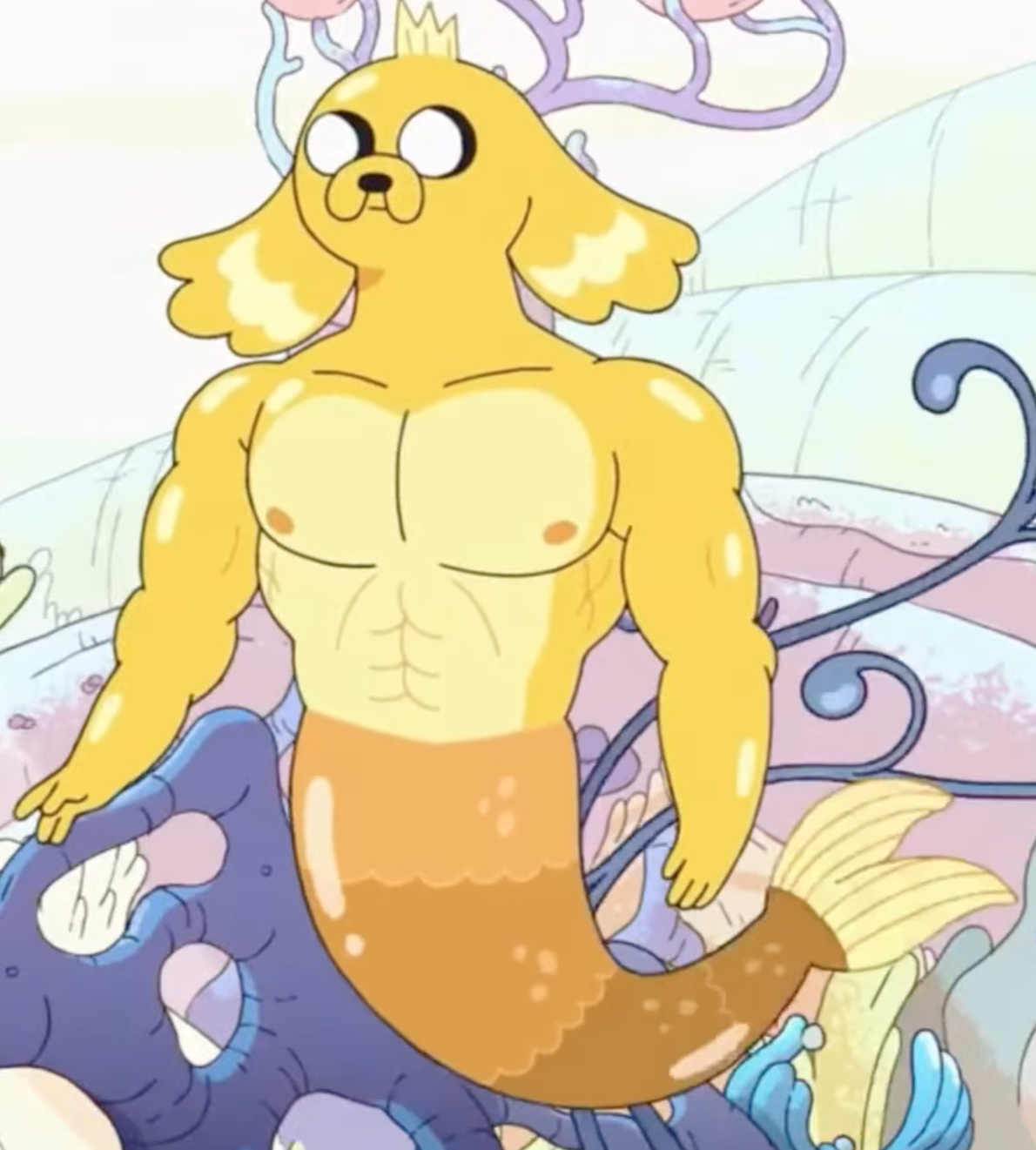 In the episode "Together Again", Finn and Jake possess fish in Life's universe, causing them to turn into mermaids. At first, Jake appeared to look more like a normal fish, but was able to change his form to look more like a mermaid. |