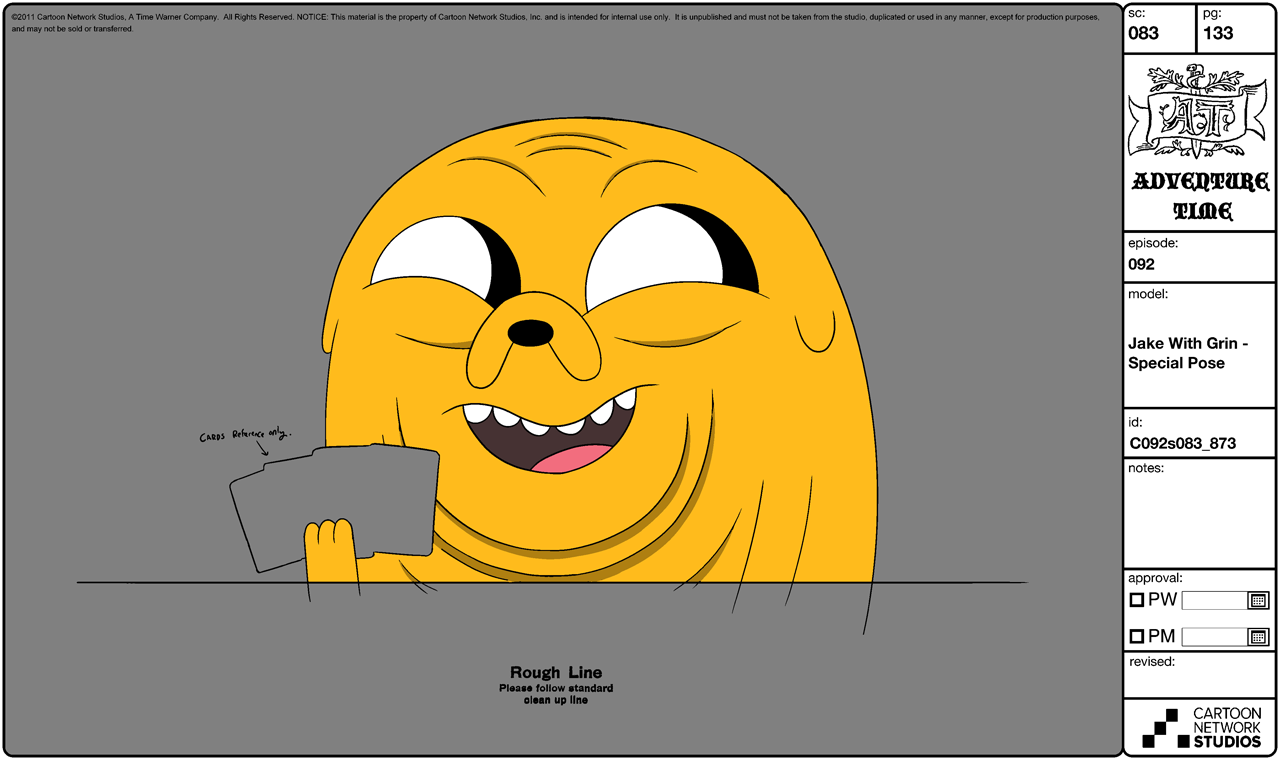 In earlier seasons, Jake's design was drawn more thin and streamlined, but as the series progressed, he became more textured and bulbous, to add a realistic appeal.