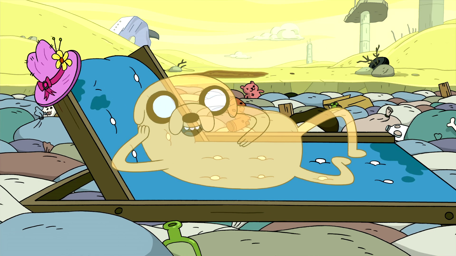 - In "The Hard Easy," Jake has a pocket (in his skin/fur) when he kept the lollipop bag the mudscamps gave them.