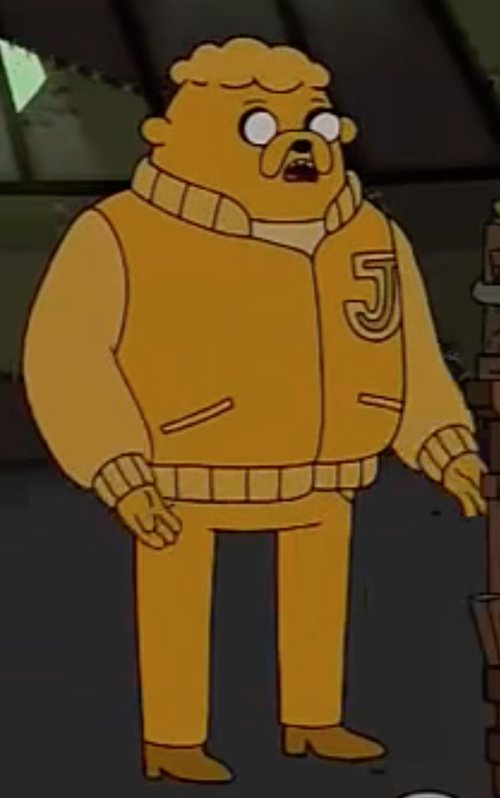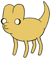 Jake can morph into all sorts of fantastic shapes with his powers, but typically takes the form of an average sized gold bulldog. As revealed in "Donny," he wears transparent pants made of spider webs spun by pixies. In "What Was Missing," he borrows the pair of pants that Marceline wore in "It Came from the Nightosphere."