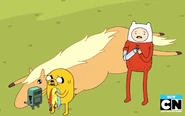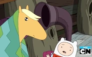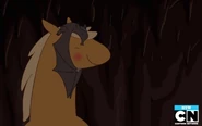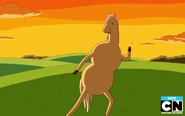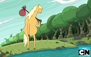 In "Horse and Ball," James Baxter is traumatized when his beach ball pops after encountering an exploding mole person. As he recuperates at the Tree Fort, he flashes back to how he was once a sad workhorse in a bustling horse-metropolis filled with work-obsessed horses. When he encountered a cave full of pre-Mushroom War garbage, he began balancing on a beach ball to cheer up a sad bat that lived there, and gained his name after mis-reading signs reading "Games" and "Bookstore." Back in the present, Finn tries to get through to James Baxter by telling him how he's a unique and special horse that makes people happy, and to let go of what he's lost and make himself happy for a change. When Jake and BMO return with an array of beach balls, James Baxter declines their offer, and instead goes outside to perform some elaborate dance moves with no audience but himself, his joy in performing restored.