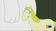 Moniker looks like any generic pony. Her hair is yellow, and her fur is beige. Moniker's eyes are identical to Jake's.