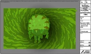 Back in the meeting, Peace Master jumps out of the window. Starchie says that he'll be ready when Peace Master returns and takes a bite out of a pickle attached to the device.