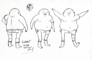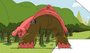 The Ogre is a humanoid giant that has dull orange-colored skin and is very fat. He wears tattered, tight-fitting jeans with cows and pigs strapped to them and has what appears to be a deer tied to his arm with rope. Birds usually fly around him. Sparkle, from "BMO Lost," and the ogre look very similar to each other.