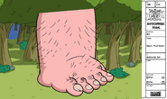 The Ogre made his first appearance in "The Enchiridion!" as the first trial for the Enchiridion. The Ogre swallows Jake whole, but has to shove him back in several times as Jake peeks out of his nose and ear. Finn, believing Jake to be dead, steals a giant one-dollar bill out of the Ogre's giant wallet and uses the dollar to glide through the air. He then rams into the Ogre's crotch, causing the Ogre to vomit a stream of yellow barf, freeing Jake. Finn then catches Jake with his legs and flies to safety, likely skipping many of the trials he would otherwise face to reach the Enchiridion. The Ogre cries to have his dollar back, so Finn folds the giant dollar into a paper airplane and sends it gliding back to the Ogre. He appears again in "Root Beer Guy" when he is tickled by Finn and Jake to spit out a few candy people.