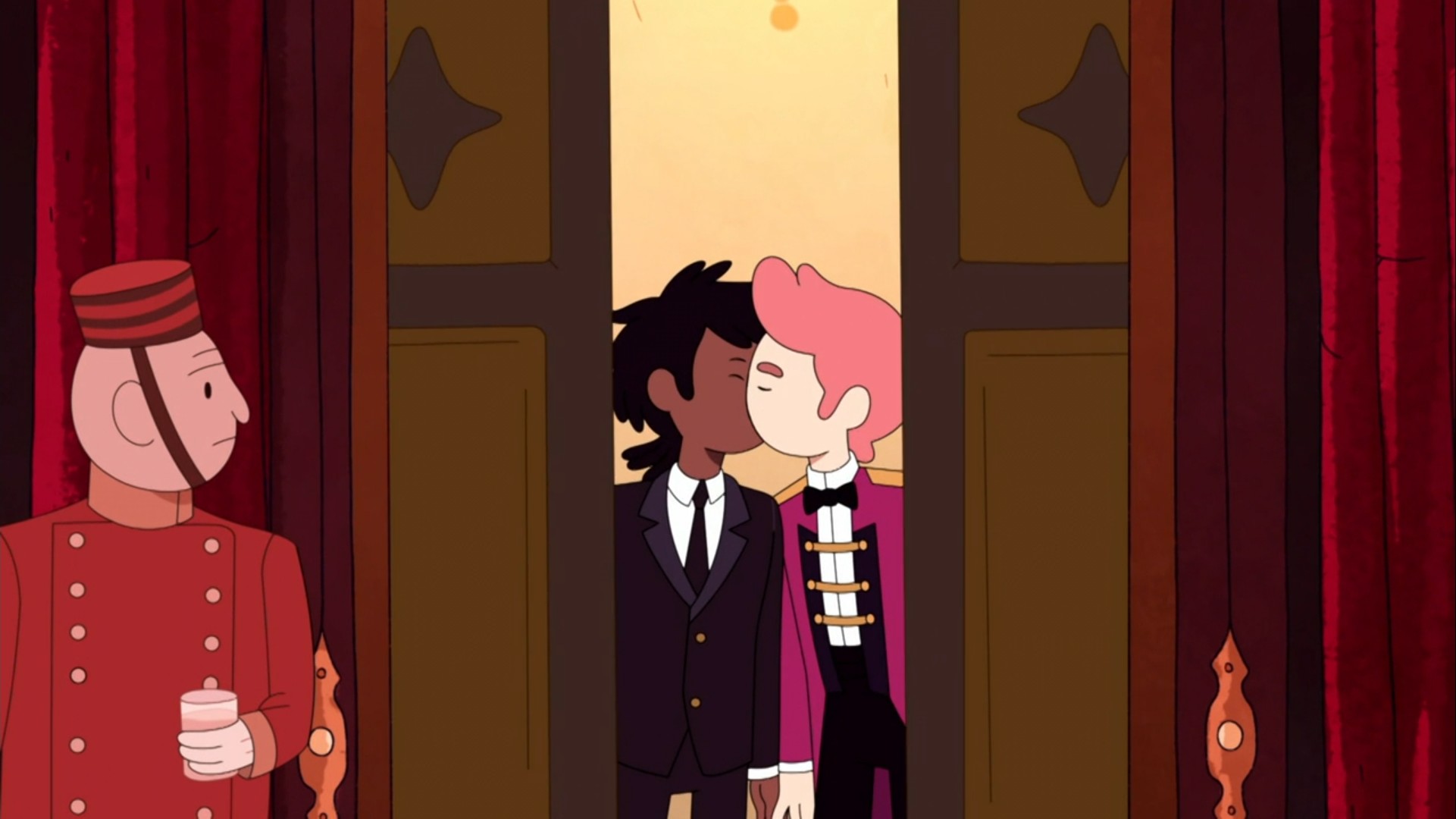 Marshall Lee and Gary kiss in the elevator at Ms. Abadeer's Blood Drive and Charity Ball