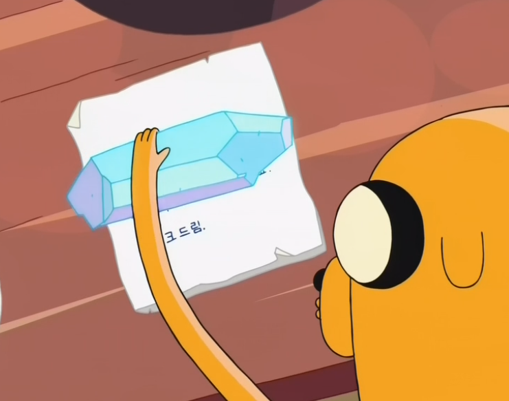 The Prism-gram is a prism-like object that sends mail in the Land of Ooo, and possibly comes from the Crystal Dimension. Once one has written a letter, one swipes the Prism-gram on the paper and it absorbs the writing. The message is transformed into light waves and sent to another Prism-gram via a beam of colored light. Then it converts the letters into brain waves and shoots them onto one's forehead through a similar, laser-like beam. So far, it has only appeared in the season 2 episode "Her Parents," where Jake used it to send a message to Lady Rainicorn's parents, Bob and Ethel Rainicorn. It has also appeared in the series finale "Come Along With Me", in BMO's cave atop Mount Cragdor.