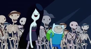 The Skeleton Army is Marceline's army of the undead, which she raises from a graveyard in "Henchman." The army consists of twelve undead skeletons with assorted weapons and shields. To summon them, Marceline chants, "Corpses buried in mud that's black, from death I command you to come back!" Although Finn thinks they are going to attack the Duke of Nuts' castle, they really just go there to celebrate the Duke of Nuts' second son's first birthday. They also appear in "Bad Little Boy" when Marshall Lee summons them to fight Fionna.