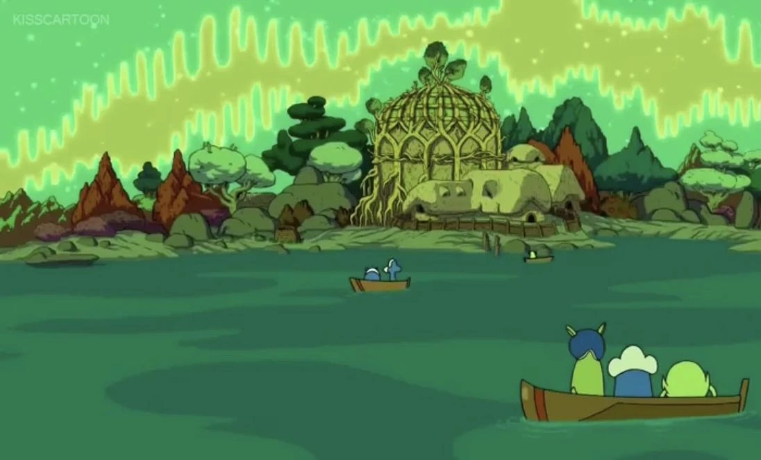 As the planet's name suggests, we see a giant, surprisingly open swamp, on which the citizens travel on boats. Here they were able to see the planet get enveloped by the light of Orgalorg's signal.