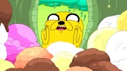 - Jake was seen eating chocolate ice cream even though he mentioned in "Slumber Party Panic" that chocolate can kill him.