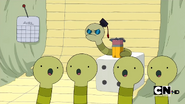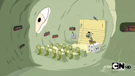 The Worm College is a college run by Pupil Worms housed inside a huge, rotting apple. While trying to become smarter, Finn and Jake attend the school in "The Real You." The class taking place during the episode is called "Theoretical Fightonomics" where the answer to questions about hypothetical, one-on-one fights is always "Werewolf Queen."